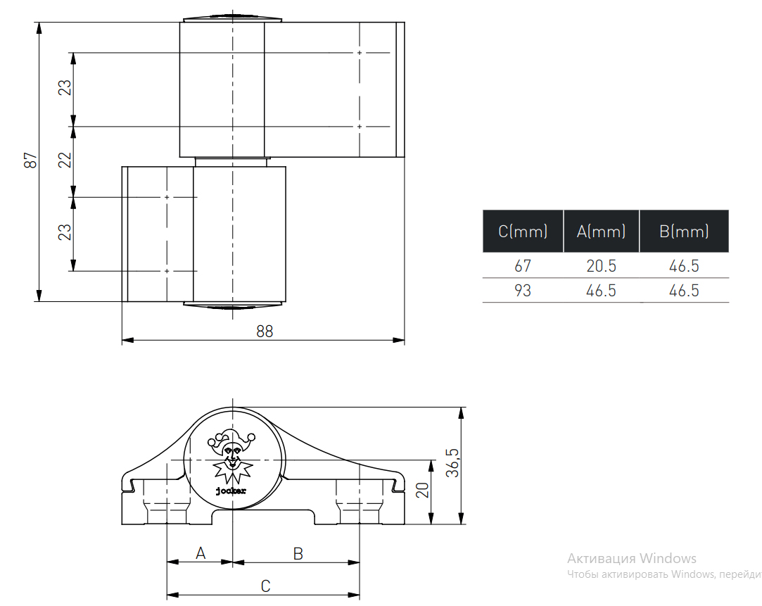 - 2 варианта расположения монтажных отверстий - 67 мм и 93 мм.