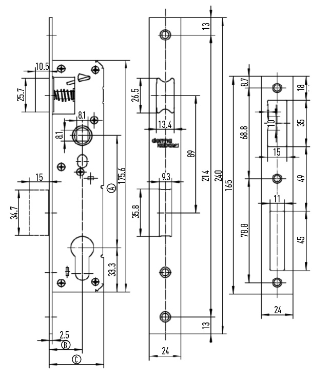 торцевая планка замка, ответная планка замка, крепёжные винты и фиксирующий винт цилиндра выполнены из нержавеющей стали.