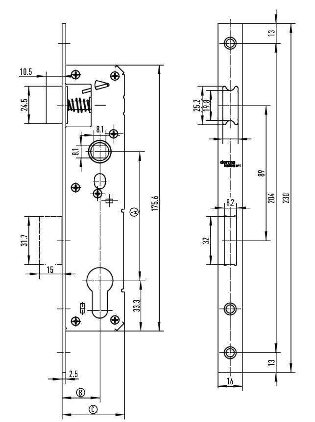 торцевая планка замка, ответная планка замка, крепёжные винты и фиксирующий винт цилиндра выполнены из нержавеющей стали.