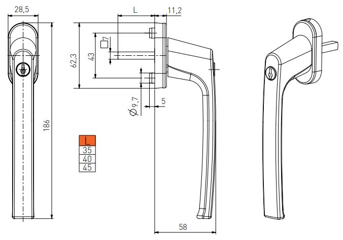 PSK – Ручка для раздвижных систем с ключом